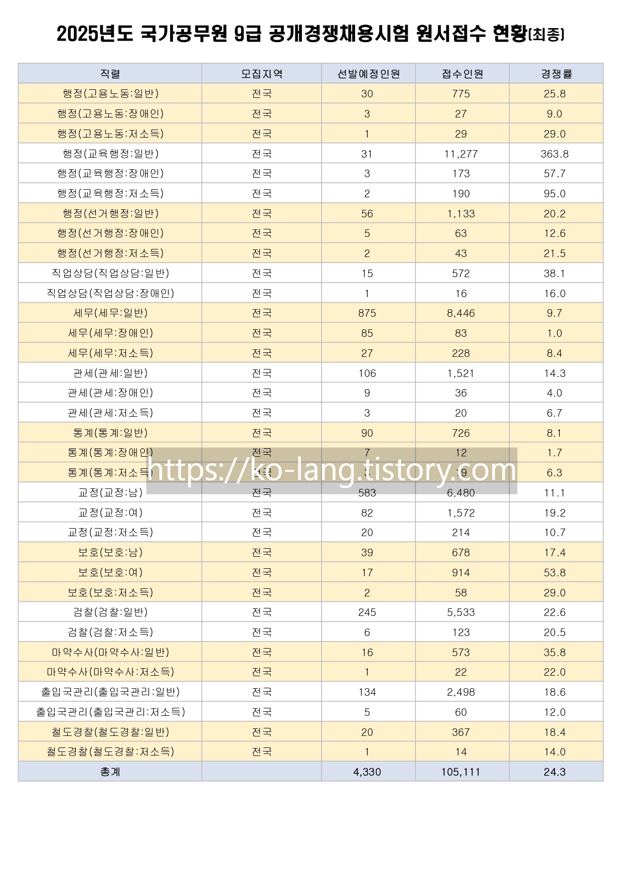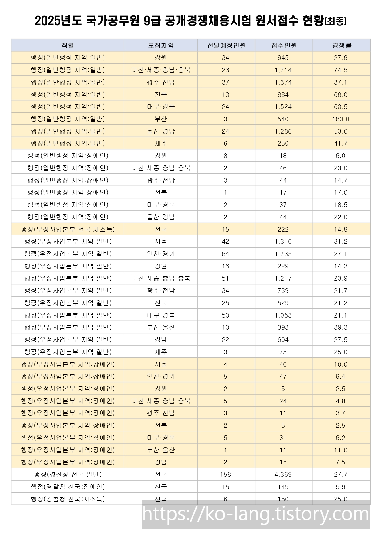 2025년 국가직 9급 공무원 시험, 주요 경쟁률 분석