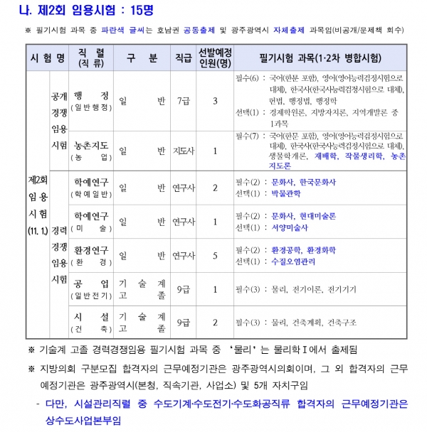 장애인 8명, 저소득층 5명, 기술계 고졸자 3명을 별도로 선발합니다! 사회적 약자의 공직 진출을 위한 광주시의 따뜻한 배려! 해당되시는 분들은 적극적으로 지원해 보세요!